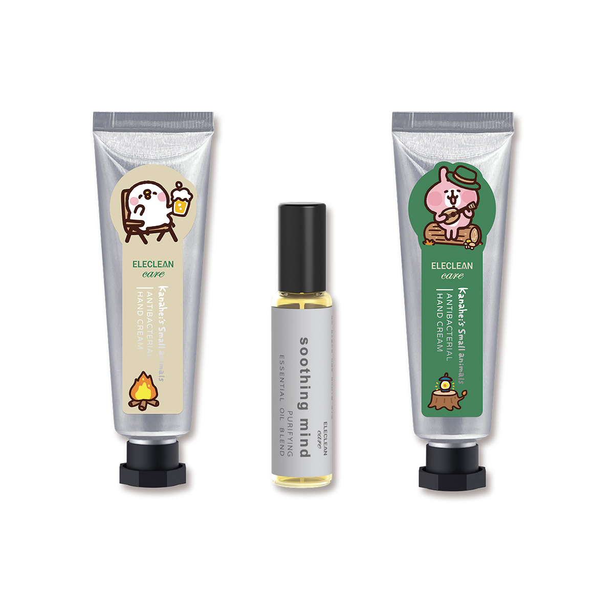 露營 P 助版小淨護手霜 ×1、露營兔兔版小漾護手霜 ×1、舒緩滾珠精油 ×1